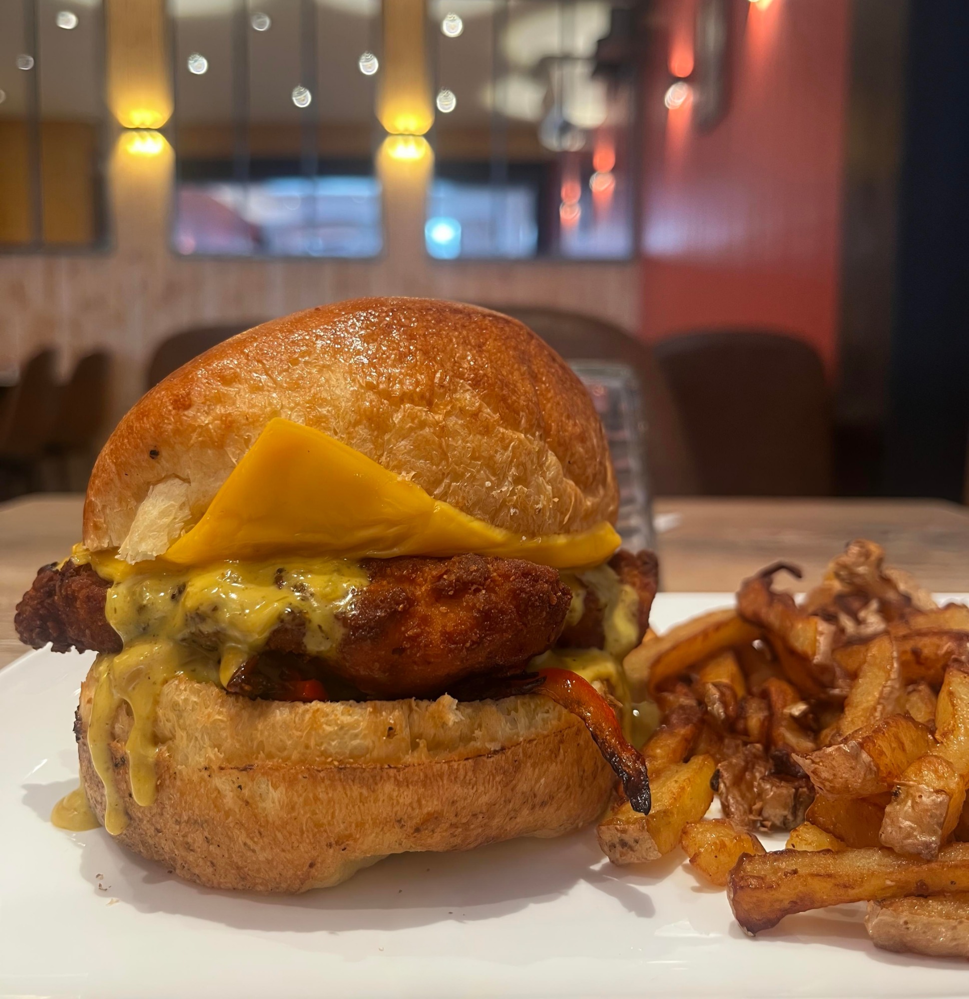 Accompagnements au choix : frites maison, salade ou frites de patates douces maison.